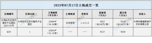 以上就是2023年7月17日大同土地成交的具体情况!更多大同土地挂牌出让及成交的信息,0352房网将持续播报,敬请关注!