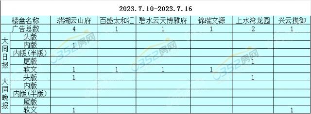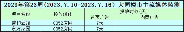 2023年第23周(2023.7.10-2023.7.16)大同楼市主流媒体监测