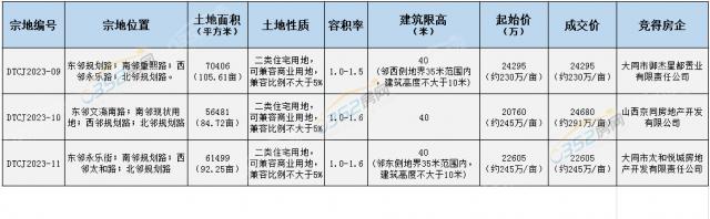 摘要:2023年12月5日,大同御东新区三宗住宅用地成功网上拍卖,分别由山西京同房地产开发有限公司、大同市太和悦城房地产开发有限责任公司和大同市御杰星都置业有限责任公司竞得,具体土地成交详情如下。