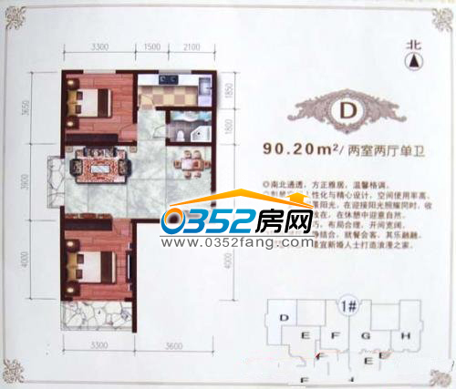 D户型,90.20㎡(两室两厅单卫)