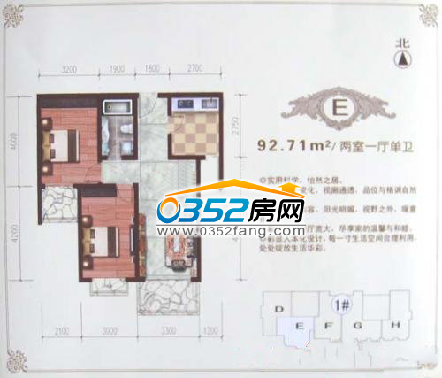 E户型,92.71㎡(两室一厅单卫)