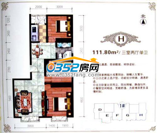 H户型明快姿彩,轩敞入户,起居室彰显主人宽阔胸襟,保证了生活区间幽静私密。主次卧室比邻而立,静逸怡然;餐厨空间相连宽敞舒逸。是三口之家上选户型。