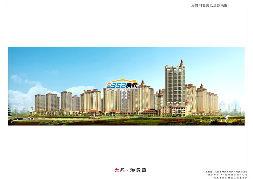“御锦源” 位于御河西路‘一中新址’旁,本项目规划建筑面积约96万平方米,总投资约30亿人民币,拟建29栋高层,目前是我市城区内规模最大的集住宅、商业为一体的组团社区。本项目地处御河西路以东,东邻皇城水系御河,与滨河生态园相伴;西边与大同一中新址相邻;南靠新建的南三环御河斜拉大桥,直通御东新区、大同二中、京大、大运高速;北与得大高速相通。项目周边有云冈建国宾馆、晨光国际大酒店等高档五星级酒店和商务中心,社区内部配套幼儿园、小学、高档会所等,为了让产品做到没有缺陷,博兴地产秉承踏实做事、做好产品的原则,从建筑材料的选择到资源的整合,再到工艺的完善,力求做到精益求精,以此来打造企业的品牌、城市的品牌。