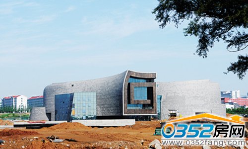 大剧院由日本建筑大师矶崎新与上海现代设计集团合作设计,坐落于文瀛北路西侧,西对博物馆,南接图书馆,北临太阳宫。经过两年多的建设,目前已初具规模,在其曲面壳体“外衣”覆盖下,远远望去,既像一座连绵起伏的山岭,又像一处古朴沧桑的石窟,气度厚重、壮美、大方。在色彩和风格上相当大胆,其创造力和细节设计成为其独特的标志。