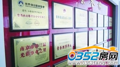 在该售楼处的一张销控表上,记者看到该小区二期10多栋商品房房号上,都贴满了已售的红色圆圈标记。而在该售楼大厅占满一面墙的荣誉榜橱窗处,几十块各种各样奖牌中,还有一块就是前期因与卢星宇所在的“中非希望工程”有关联,而被闹得沸沸扬扬的“世界杰出华商协会”所颁发,江苏南京市宇扬集团也就成了“世界杰出华商协会会员单位”。