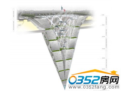 这座“摩地大楼”将建在墨西哥城中心主广场,其中住宅、商场以及博物馆各占10层,另外35层用作办公楼。为了让这个巨大的地下建筑获得自然光照射,建筑师们在广场中心设计了一个240米见方的“玻璃地板”,使得阳光能够通过这个透明地板以及中间的倒三角形天井照射到每一个楼层。同时,地板上面还会竖立起一面巨大的墨西哥国旗,而在建筑里面还会有一个文化中心。