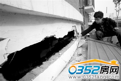 4号楼1单元一低层居民说,一周前的一个午后,他忽然听到“轰”的一声闷响,并感到地面微震。他出门查看发现,1单元南侧的楼房基角裂开一条宽约10厘米的裂缝,里面还不断地涌出水来。