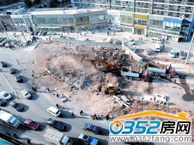 由于当天风大,拆迁人员找来洒水车。铲车和挖掘机拆除时,洒水车及时将飘起的灰尘压住。下午两点多,各部门工作人员离开,市政和拆迁的相关人员仍在继续施工。直到昨晚5点多,房屋全部被拆除,四周用蓝色围挡围起。
