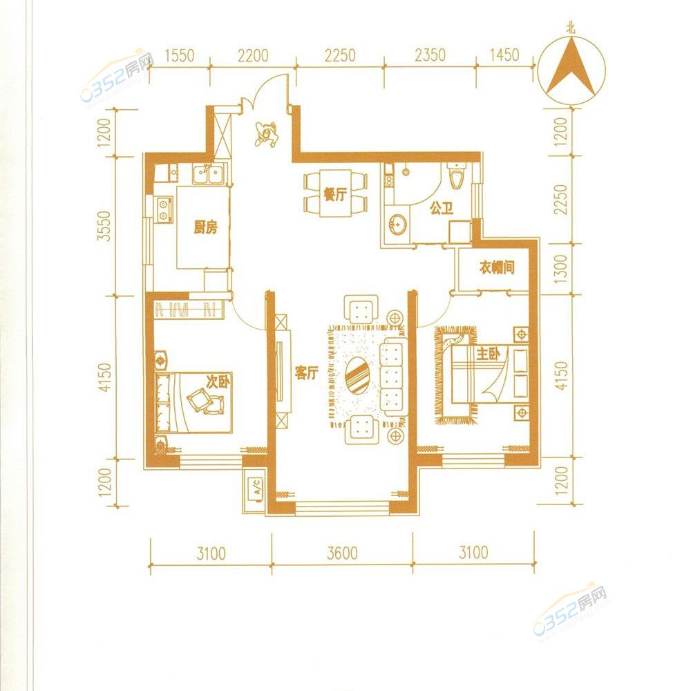 御东万达,万金街万汇金城 3室2厅1卫 108㎡