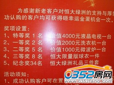 自恒大绿洲开盘以来,凭着科学打造的精品户型、满屋名牌的品质装修,以及航母级豪华配套体系等诸多优势和亮点,赢得了广大客户的一致好评。树立了超高的知名度和美誉度。据悉,活动当天购房的客户均可参加“购房砸金蛋”活动,赢取品牌家用电器等丰厚奖品,百分百的中奖率,带给客户百分百的快乐惊喜。
