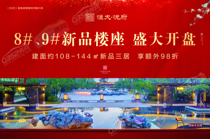 3、4月18日,恒大悦府迎来8#、9#新品楼栋的加推开盘,户型约108-144㎡。
