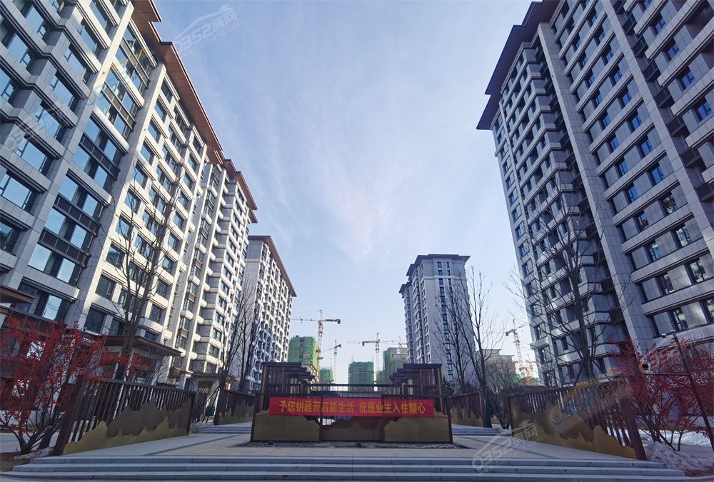 天香蓝郡住宅外立面建设完成,玻璃安装完毕。