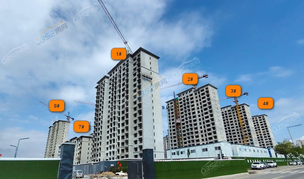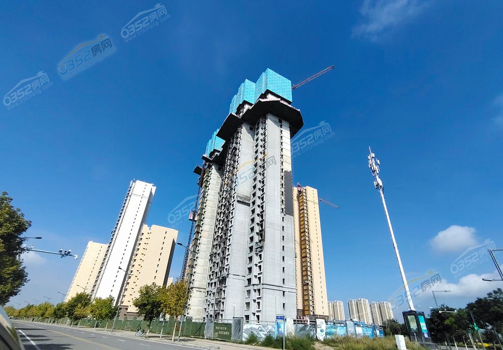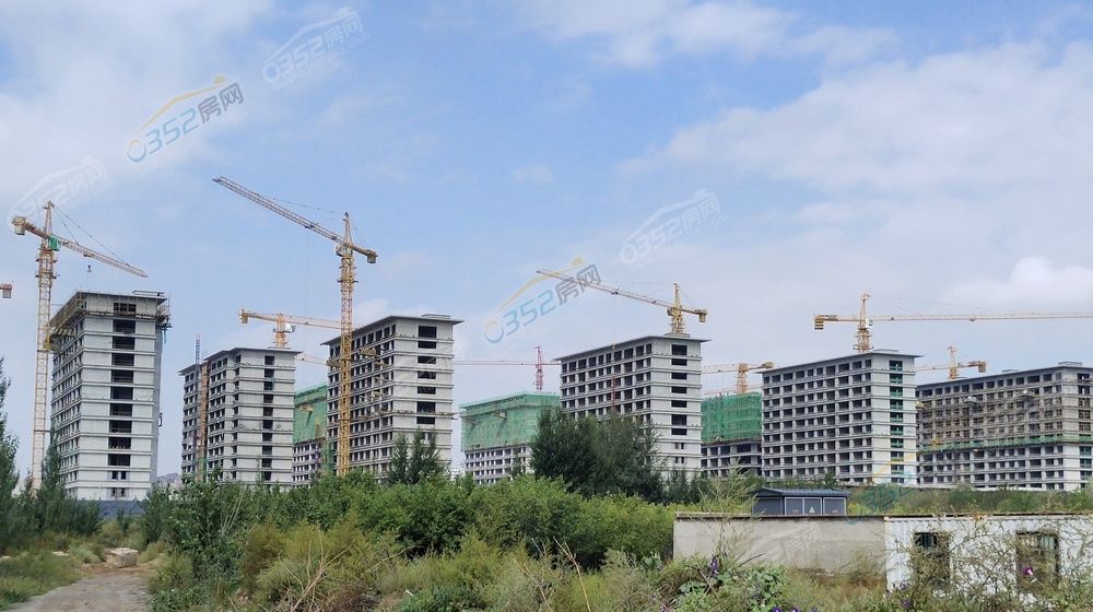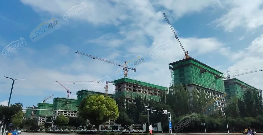 工程进度:部分楼栋主体基本建设完成,东侧楼栋进行外保温施工。