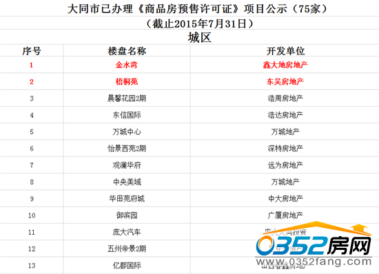 > 大同市已办理《商品房预售许可证》项目公示(75家)