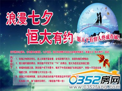 愿天下有情人终成眷属!恒大绿洲这周末为您和“她”构筑起爱的鹊桥,让属于您和“她”的七夕绚丽多彩,您还在犹豫什么?赶快带上您心中的“女神”、“白马王子”来参加吧!