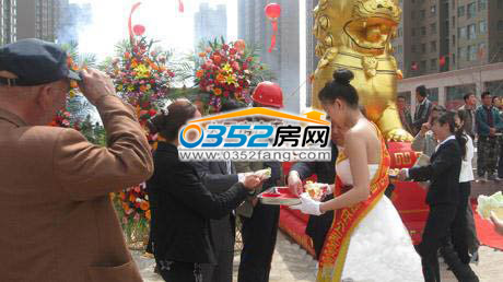 水泉湾·龙园的中心广场人山人海热闹非凡,到处人头攒动,军乐齐鸣,喜庆的气氛充斥着角角落落。最引人注目的还是水泉湾·龙园为了配合此次交房活动特制的直径长达3米的巨型蛋糕,吸引了不少业主及市民的围观。还有就是礼议小姐个个服务周到!很暧人心!