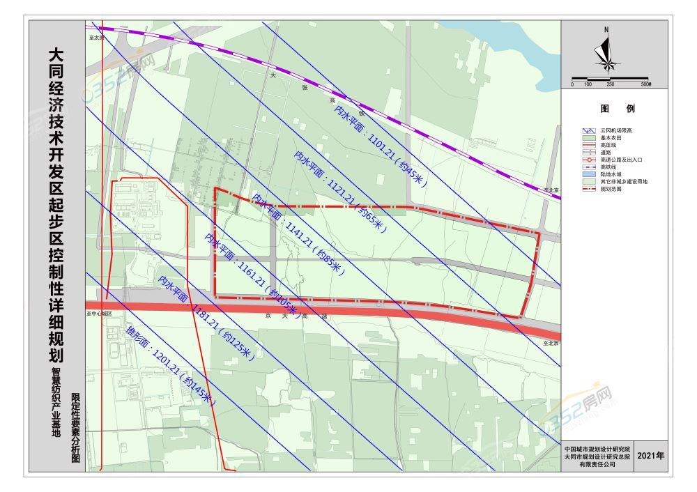 基地位于大同云冈国际机场净空管制范围内,规划地块建筑高度地块应符合《云岗机场管控限制图》管控要求。