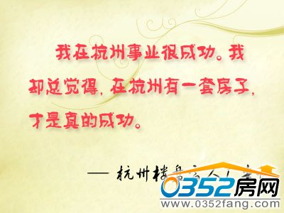 住在杭州“口水楼市”论坛里挂出一个帖子,专门晒房产广告,打头的就是杭州某房企在滨江区的一个楼盘的广告,广告词是这样写的:老家的人都说,我在杭州事业很成功。我却总觉得,在杭州有一套房子,才是真的成功。