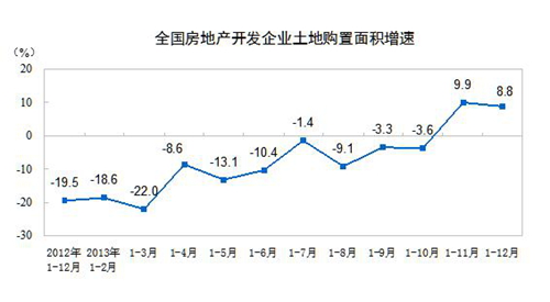 统计局数据显示,2013年房地产开发企业土地购置面积38814万平方米,比上年增长8.8%。