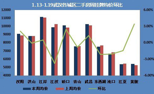 武汉二手房数据监控中心数据显示,2014年1月13日-2014年1月19日,武汉二手各