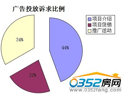 广告中,诉求点是关键内容,在此次统计中,有相当一部分的楼盘投放信息是相关的项目介绍,其次是开发公司推广活动,而其中项目销售占少部分,这也和项目具体的销售节点有关。