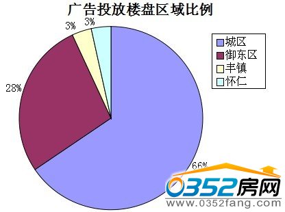 本周大同房地产广告从投放区域来看,投放最多的区域是城区,达66%,御东区楼盘占比28%,丰镇和怀仁各有一个项目在大同投放,其它区域基本没有广告投放。