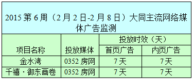 2015年第6周(2.2-2.8)大同楼市主流媒体监测