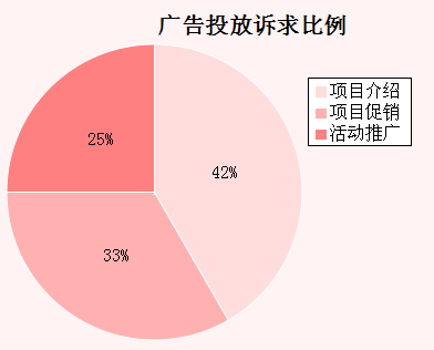 广告中,诉求点是关键内容,在此次统计中,整体上看,广告诉求落差很大,主要是项目介绍和楼盘项目促销,其次是活动推广,本期没有人才招聘,广告诉求通常和项目具体的