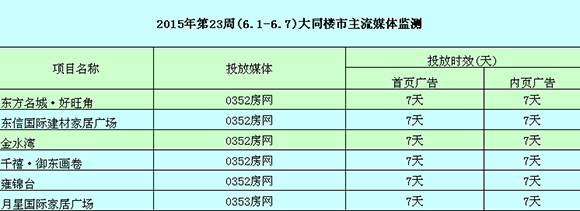 2015年第23周(6.1-6.7)大同楼市主流媒体监测