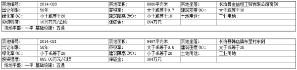 四、本次公开公告出让的详细资料和具体要求,见公开公告出让文件。申请人可于 2014年03月20日 至 2014年04月08日 到 长治县国土资源局交易事务所 获取 公开公告 出让文件。