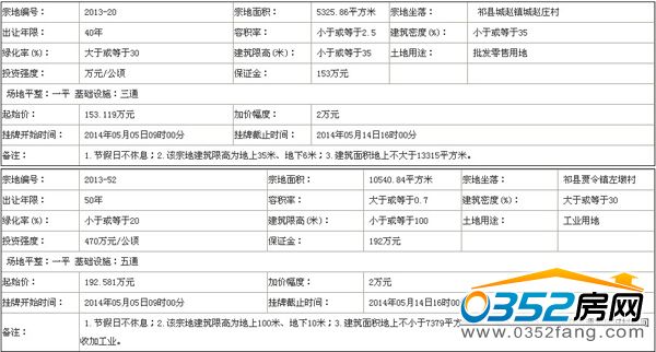 2013-20 号地块:2014年05月05日09时00分 至 2014年05月14日16时00分 ;