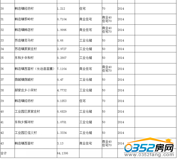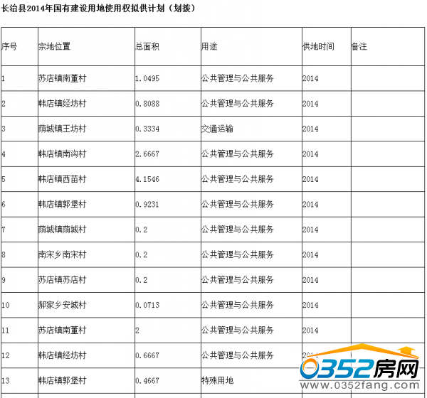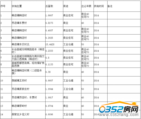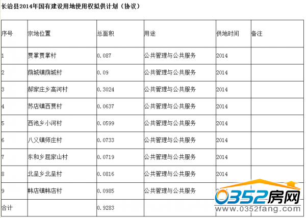 长治县2014年国有建设用地使用权拟供计划(公开出让)