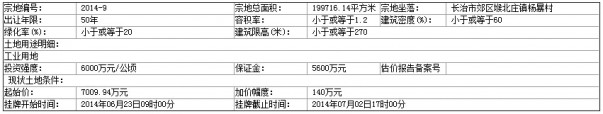 四、本次挂牌出让的详细资料和具体要求,见挂牌出让文件。申请人可于 2014年06月11日至2014年06月30日到长治市国土资源交易事务中心获取挂牌出让文件。