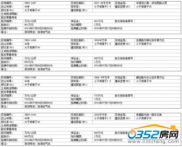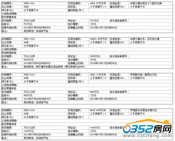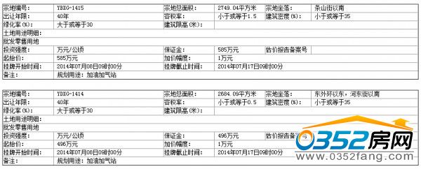 YDXG-1414 号地块:2014年07月08日09时00分 至 2014年07月17日09时00分 ;