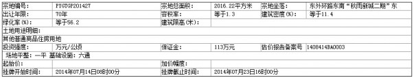 PYGTGP201427 号地块:2014年07月14日08时00分 至 2014年07月23日16时00分 ;