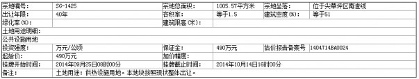 SG-1425 号地块:2014年09月25日08时00分 至 2014年10月14日16时00分 ;