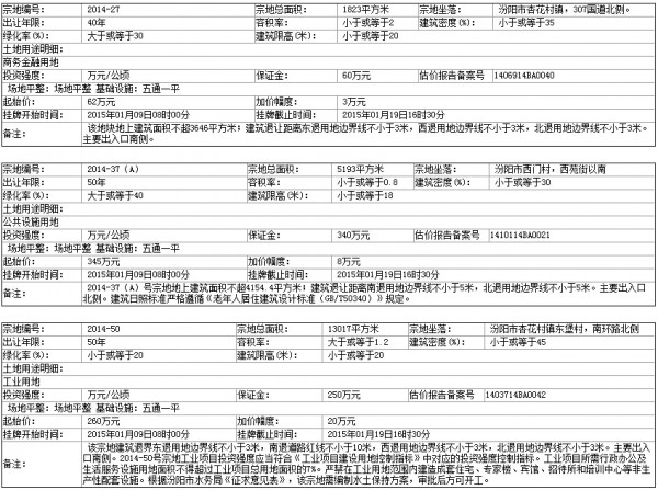 2014-27、2014-37(A)、2014-50号三宗地具有中华人民共和国国籍的公民、企业、其它组织均可参加竞买,可独立竞买也可联合竞买。
