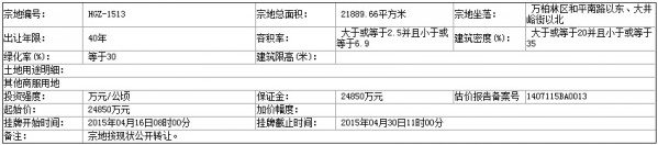 HGZ-1513号地块:2015年04月16日08时00分至2015年04月30日11时00分;