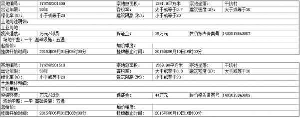 PYGTGP201509 号地块:2015年06月01日08时00分 至 2015年06月10日16时00分 ;