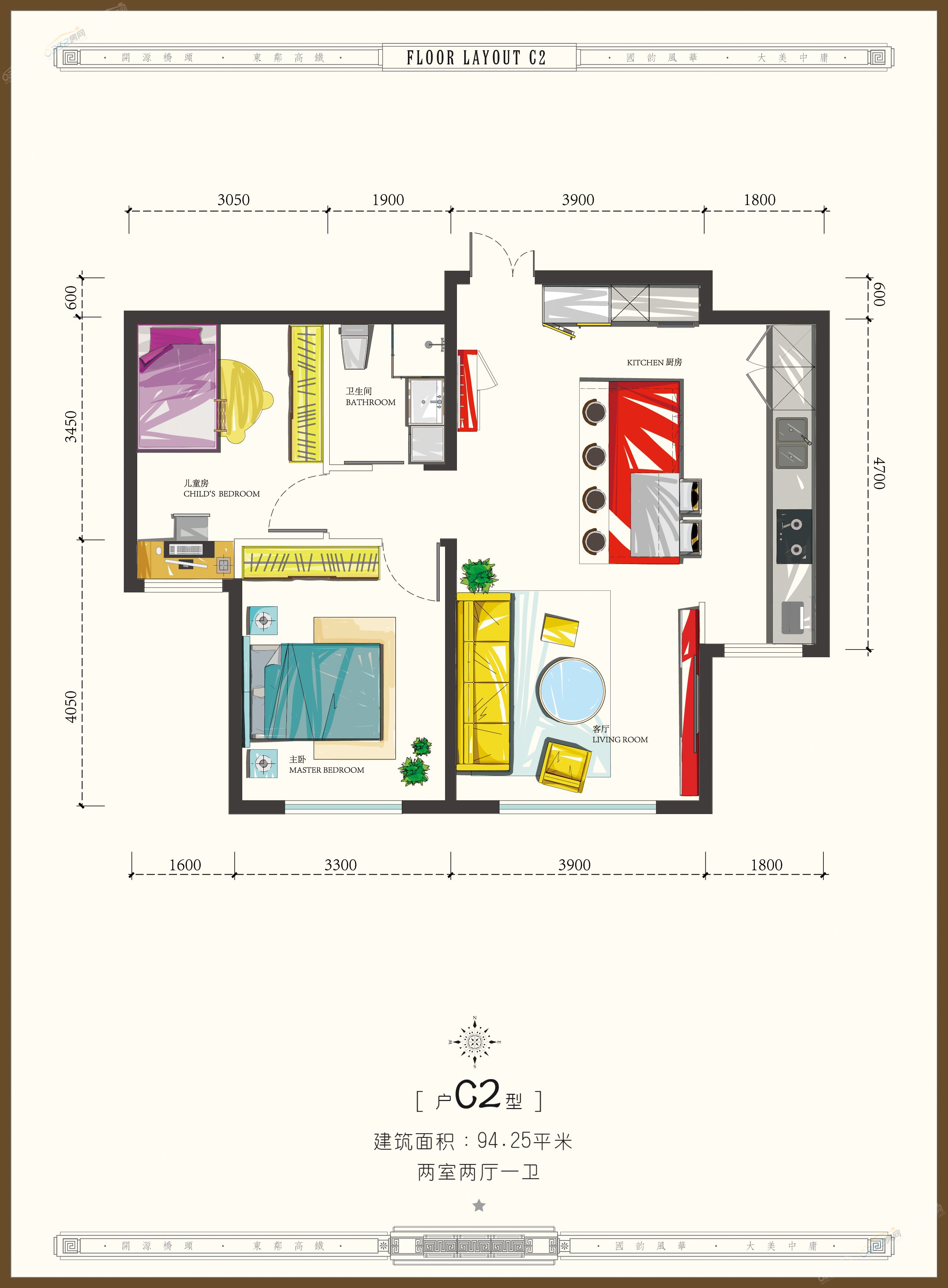 最后,我们对表中这两套房源的户型做一点介绍:126平米三室B户型,特点是户型特别方正、面积浪费极少,次卧面积大,最小的卧室也超过了12平米,餐厨完整独立,面积阔达15平米,这套房比较适合人口较多的家庭;94平米的两室C2户型,特点是布局紧凑、分布均匀,南北通透、全面向阳,更适合新婚家庭或者空巢老人们使用。