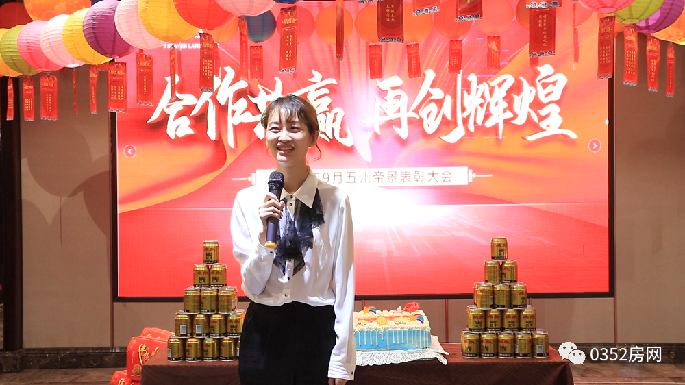 由五州帝景营销总监张未妮的致辞中活动随着开始:各位同事们,大家晚上好,感谢大家的不约而至,感谢公司各位领导的大力支持,其次感谢我们的合作伙伴,各大门店以及团队的每一位成员。8月你们的努力和付出,让我们8月的业绩完美收官。今天的表彰大会,让我们更加凝聚、更加团结、更加有去拼搏的活力。为之后的目标鼓舞人人心!