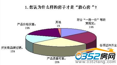 有的放矢,才能效果明显。为厘清购房者在心中对“放心房”的判定标准,搜房网此前发布了“说说您心中的‘放心房’”楼市大调查。截止5月31日,总计收到来自全国314个城市的有效调查问卷9千余份。调查数据显示,绝大多数网友认为“放心房”首先要满足质量可靠的条件。同时,近半数受访者认为“放心房”行动有助于促进房地产市场的良性发展。