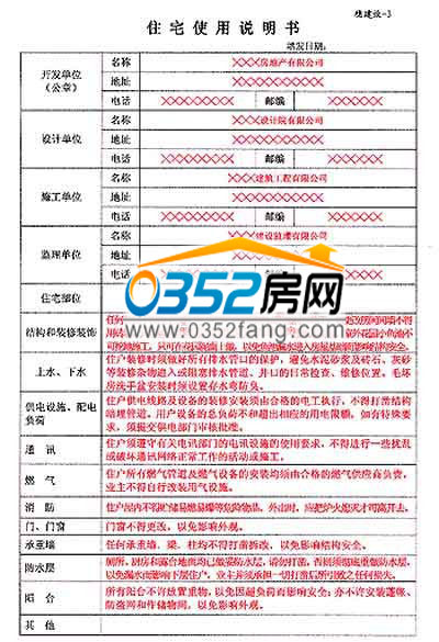 《住宅使用说明书》应当对住宅的结构、性能和各部位(部件)的类型、性能、标准等作出说明,并提出使用注意事项,一般应当包含以下内容:?