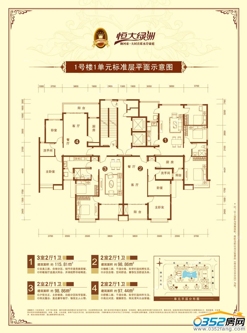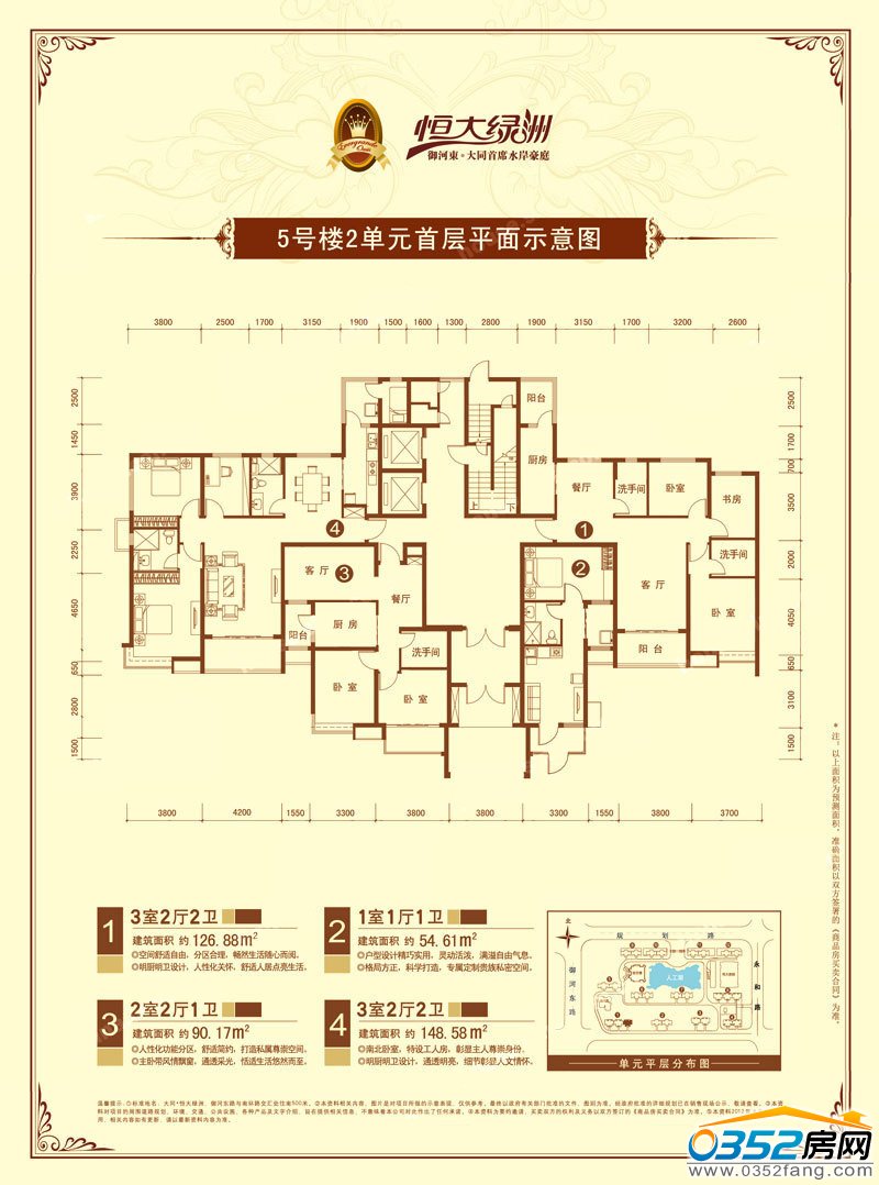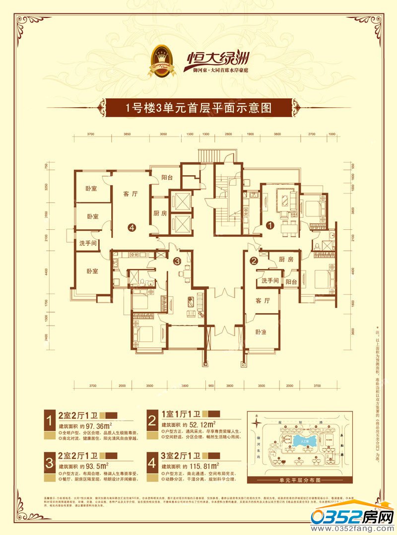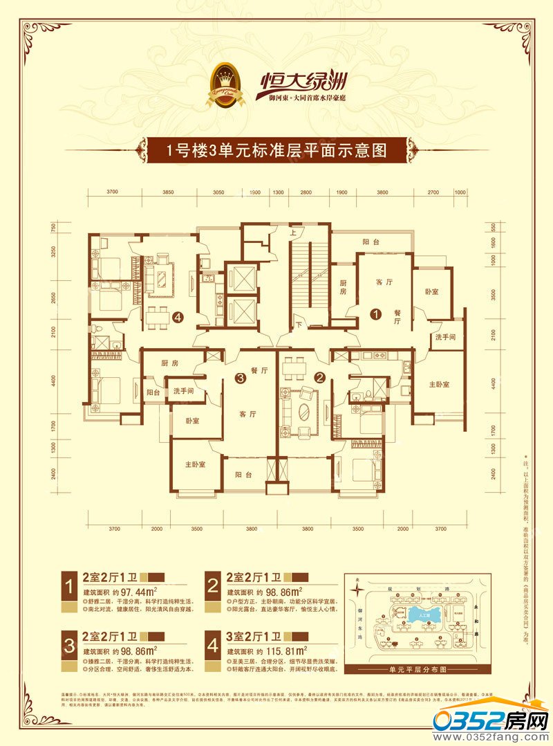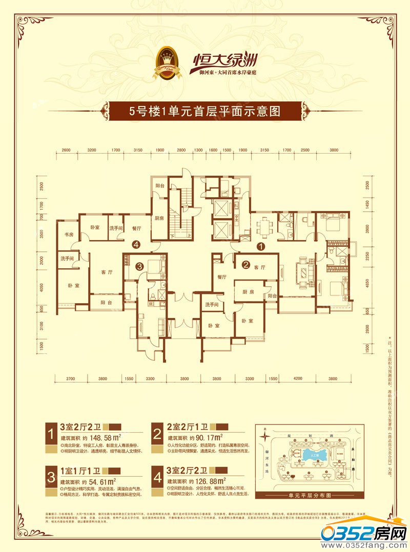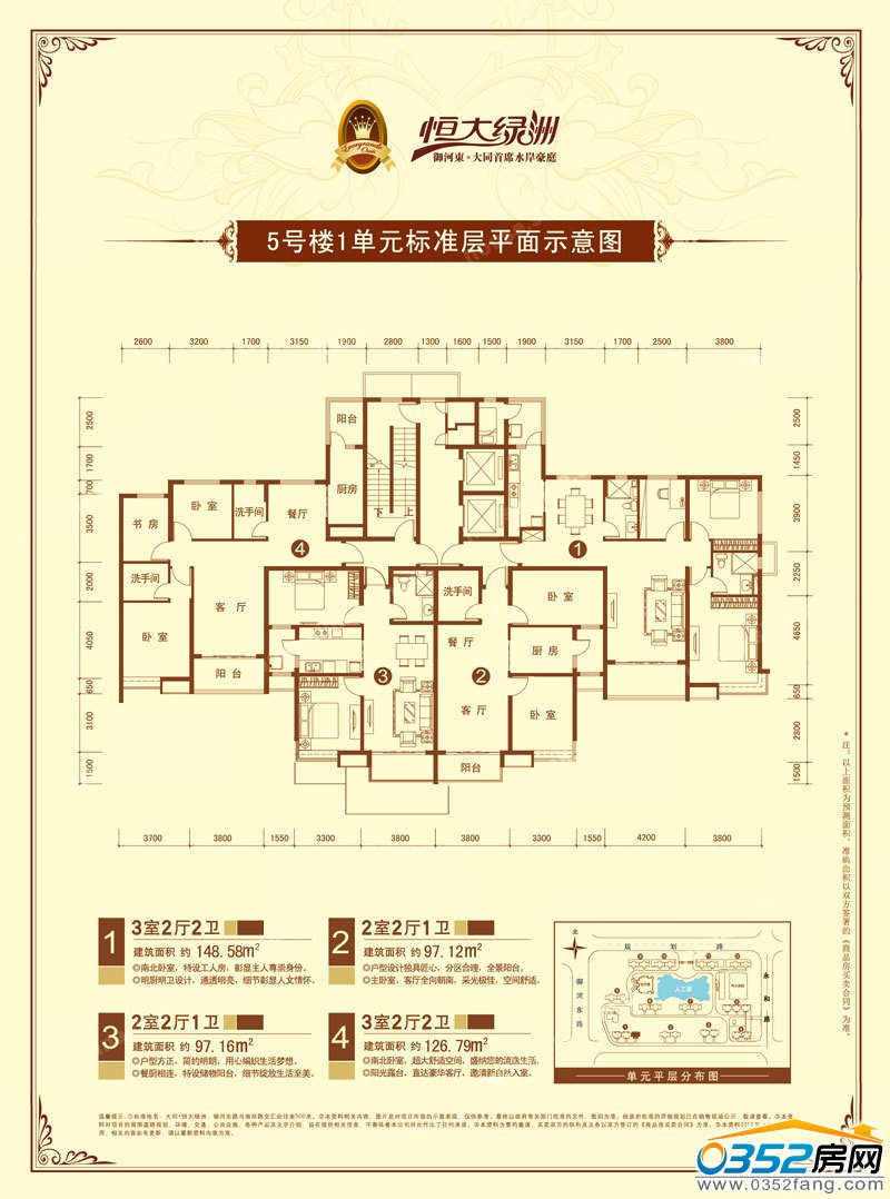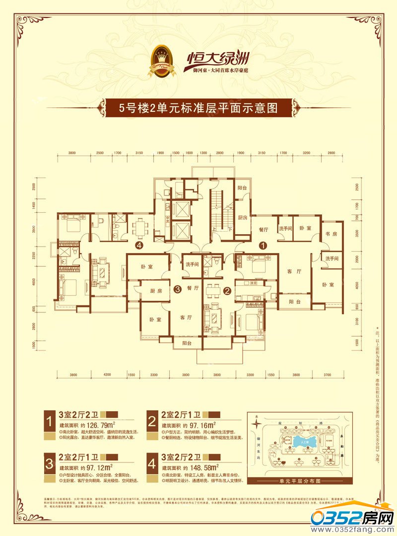 3室2厅2卫建筑面积约148.58㎡ 2室2厅1卫建筑面积约97.12㎡ 2室2厅1卫建筑面积约97.16㎡ 3室2厅2卫建筑面积约126.79㎡ |