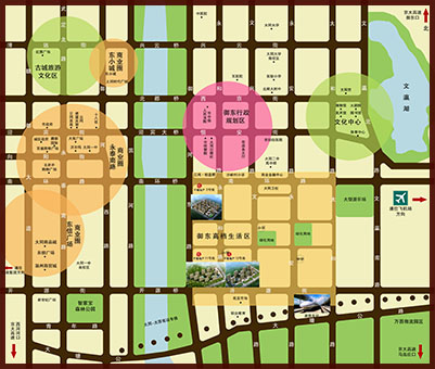 千禧·大同御东画卷位于大同市御东新区,东临永和路,南邻开源街,西临御河东路。东西长418.3米,退南侧绿化带10米,其地理位置优越,交通便利。规划总用地177698.03平米,其中建设用地面积地上126217.24平米,地下建筑面积51480.79平米,代征绿地面积40473.7平米。“以人为核心”注意处理好自然环境-住宅建设-人的关系,把居民对居住环境、居住类型和物业管理三方面的需求作为规划设计重点,努力把小区规划成具有优美的居住环境、完善的配套服务设施、丰富的历史文化内涵的21世纪新型居住小区。本小区具有几大特点:1:超低容积率2:超大楼间距3:超高得房率4:超低公摊率5:一梯两户,南北通透6:比邻开源街、御河东路、紧邻大西铁路(动车)终点站