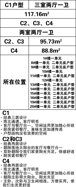 东信国家建材家居广场户型以大众消费为前提,面积从70-117平米都有,户型设计突出人性化设计理念,南北 通透,合理分配空间,让生活更舒适。