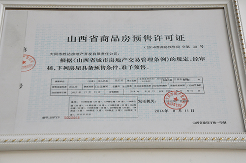 山西省商品房预售许可证