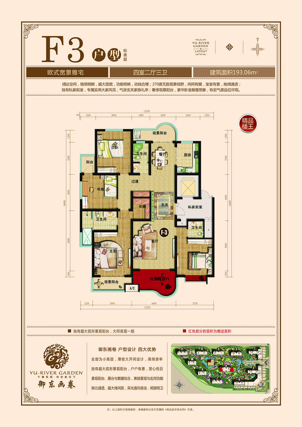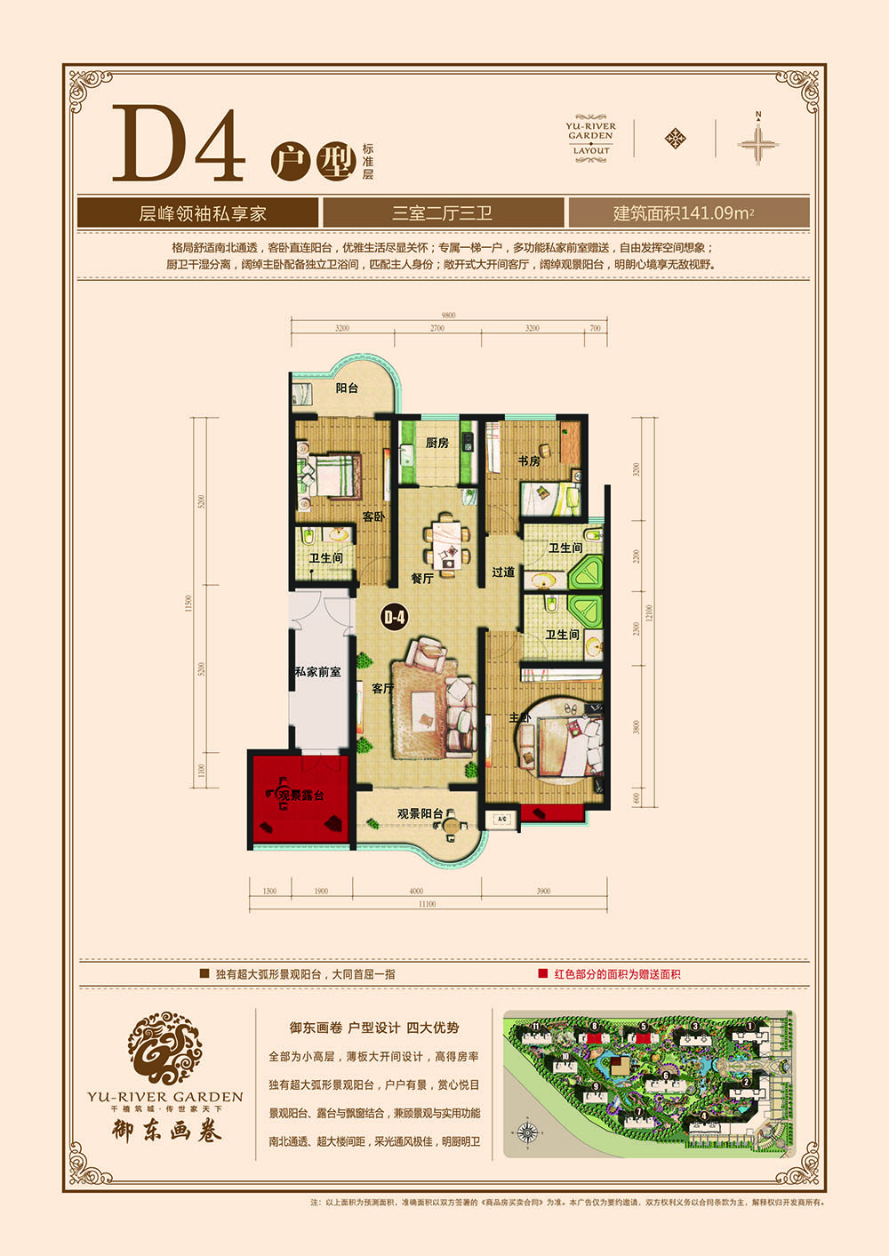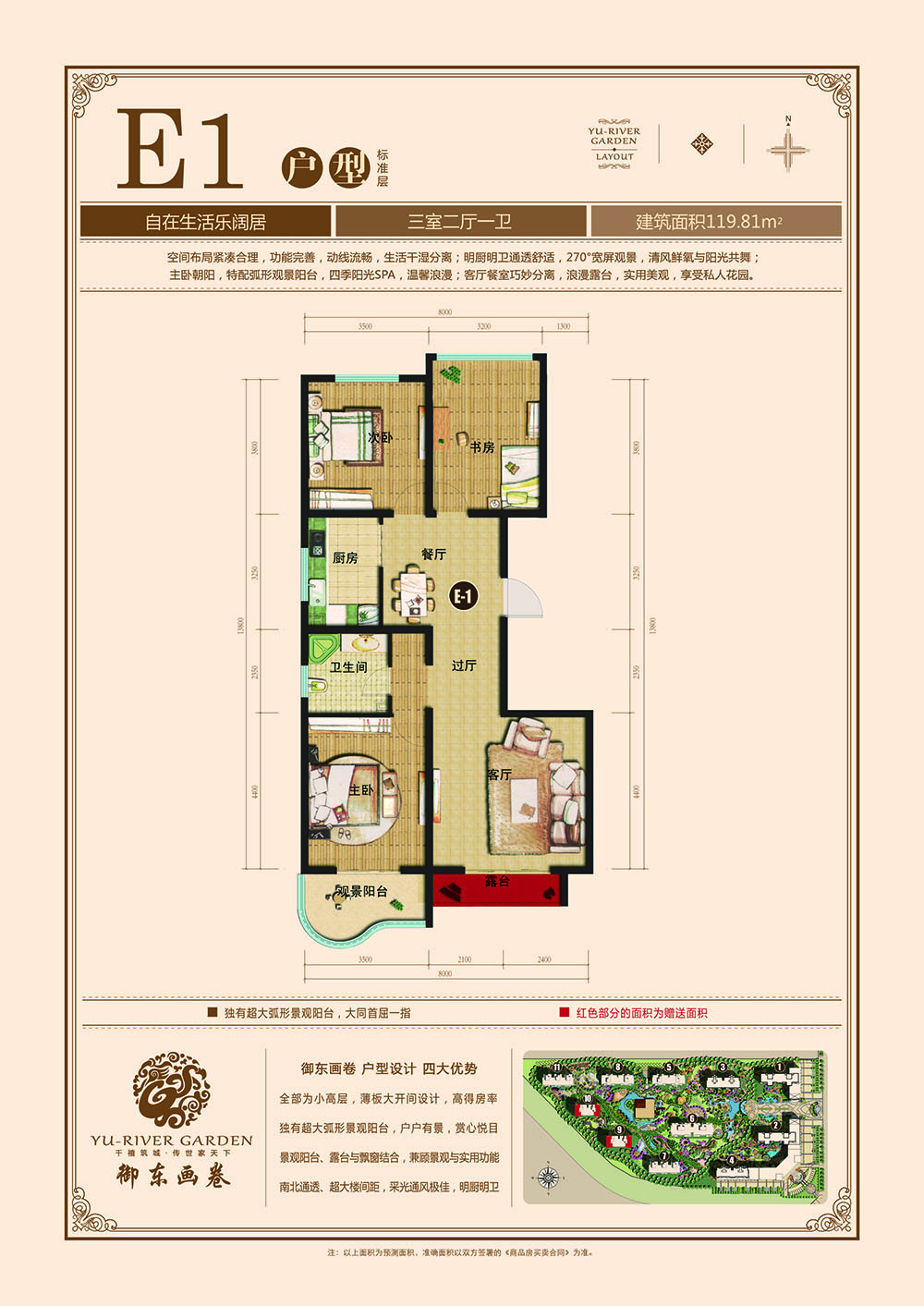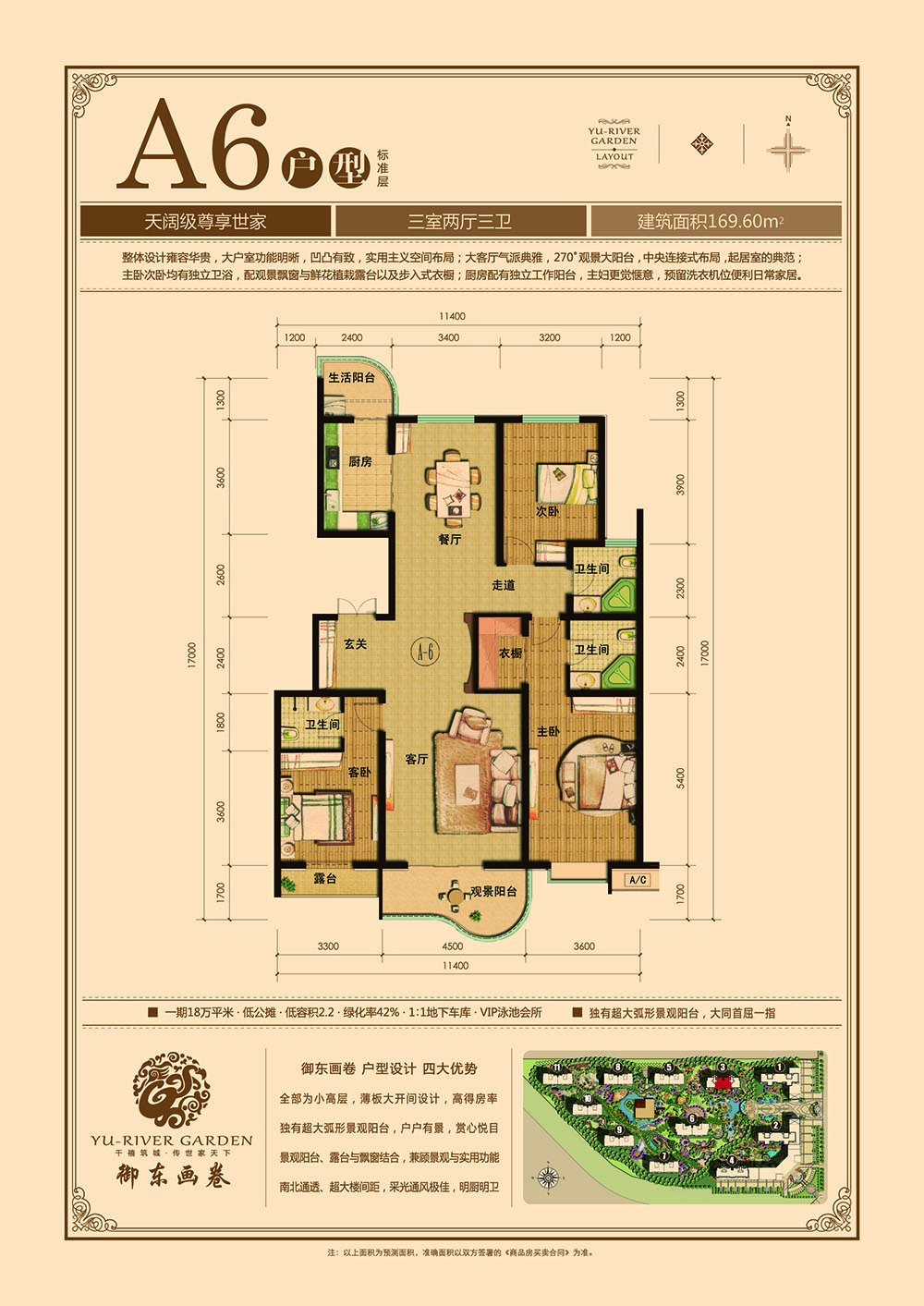 千禧御东画卷C1户型三室两厅两卫142.84平米360全景图