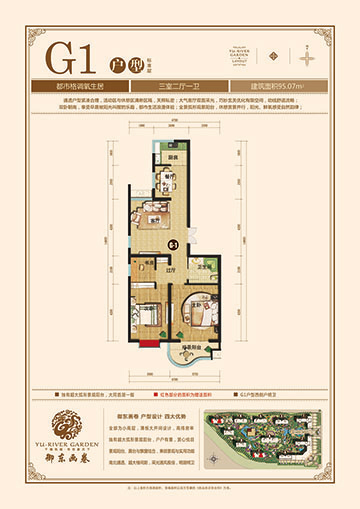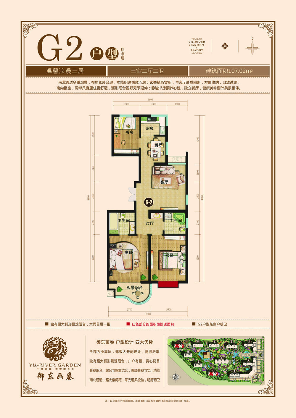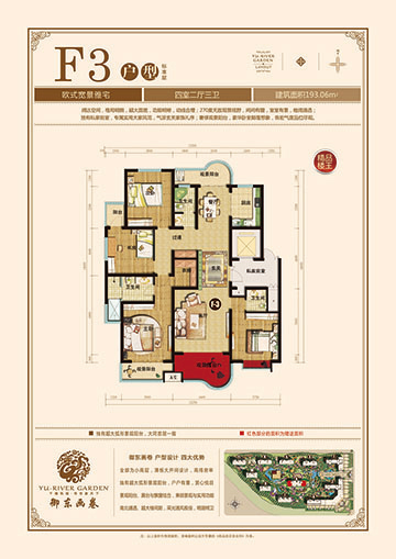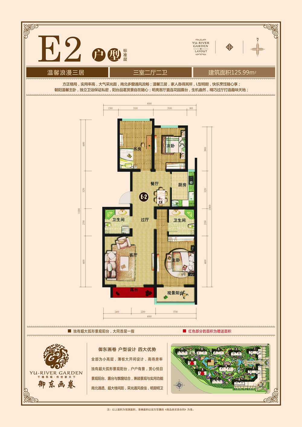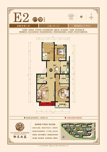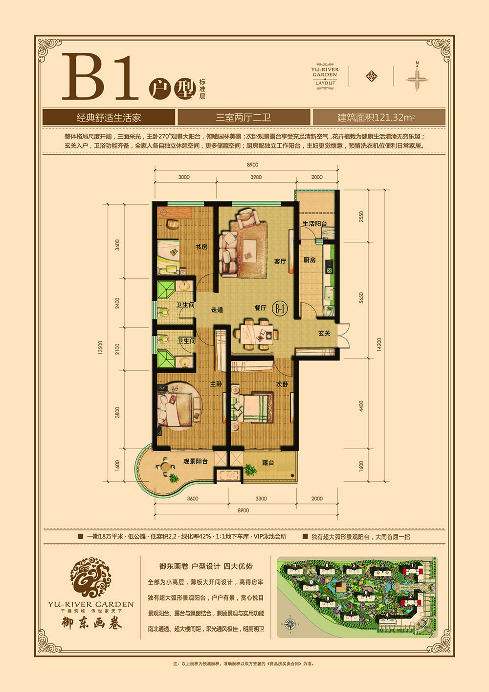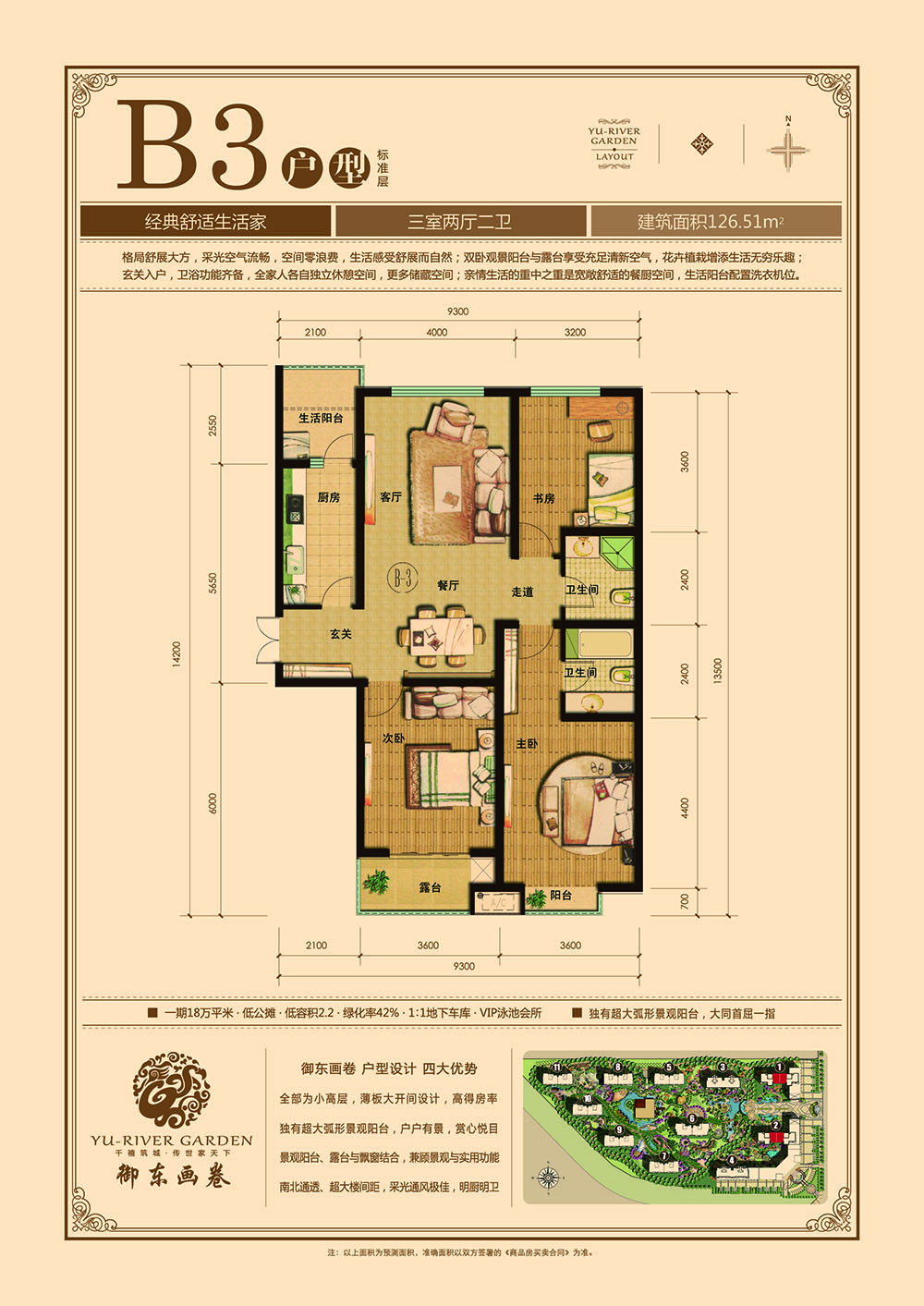 千禧御东画卷C1户型三室两厅两卫142.84平米360全景图