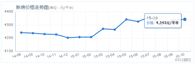 据大同0352房网网站有关大同在售新房均价走势参考显示,目前大同在售楼盘,2015年10月统计大同楼盘均价4343元/平米,9月份统计大同楼盘均价同为4336元/平米。房价在2015年10月和9月相比,10月出现小幅上涨趋势,每平米上涨7元。